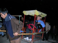 Kathy in a sedan chair on the steps at Fengjie dock |