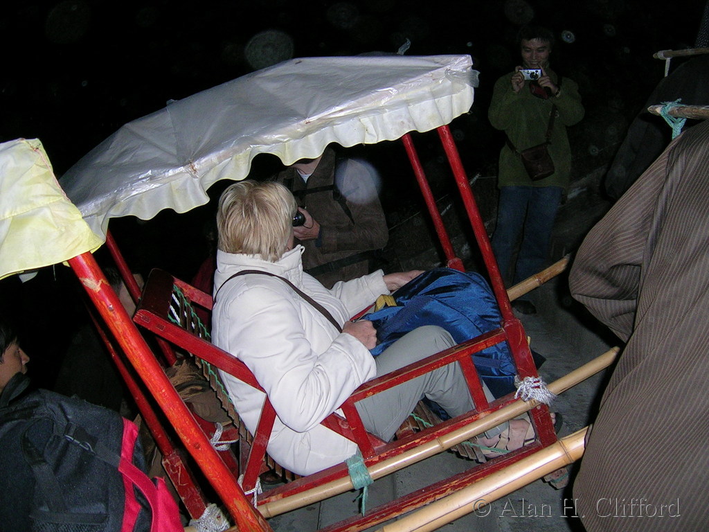 Kathy in a sedan chair at Fengjie dscn0485 |