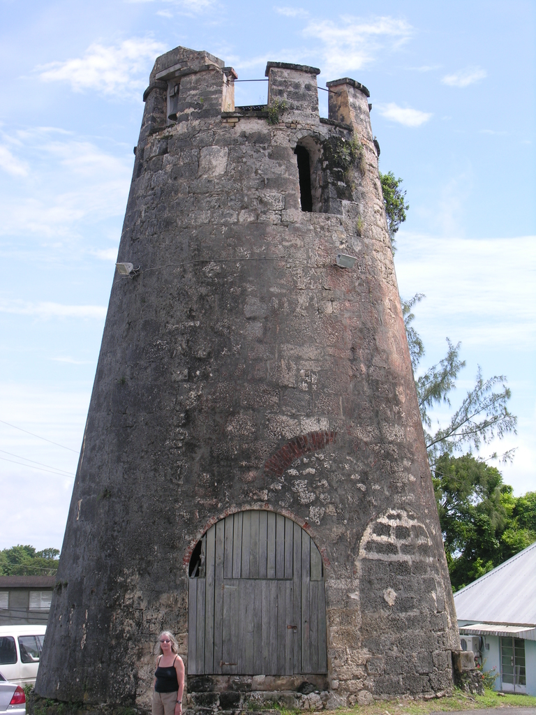 Margaret and an old tower in the Min. of Ag. near Graeme Hall dscn2068 |